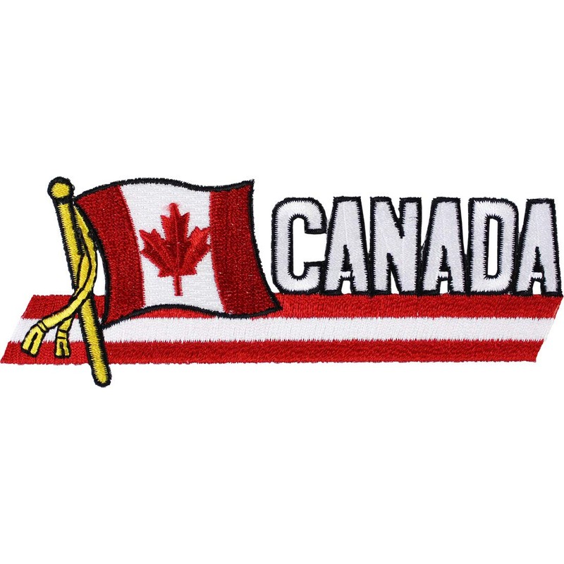 Our flag patches feature the flag of Canada flying next to the name, and can be sewn on or ironed on. The patch measures approximately 1.75" x 4.75".
