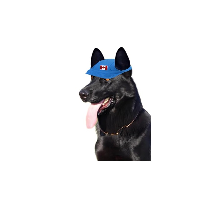 Canada Maple Flag Patch Pet Hat,Black Canadian Leaf Dog Hats,Adjustable Sun Protection Cap with Visor Ear Holes for Small Medium Cat Dogs