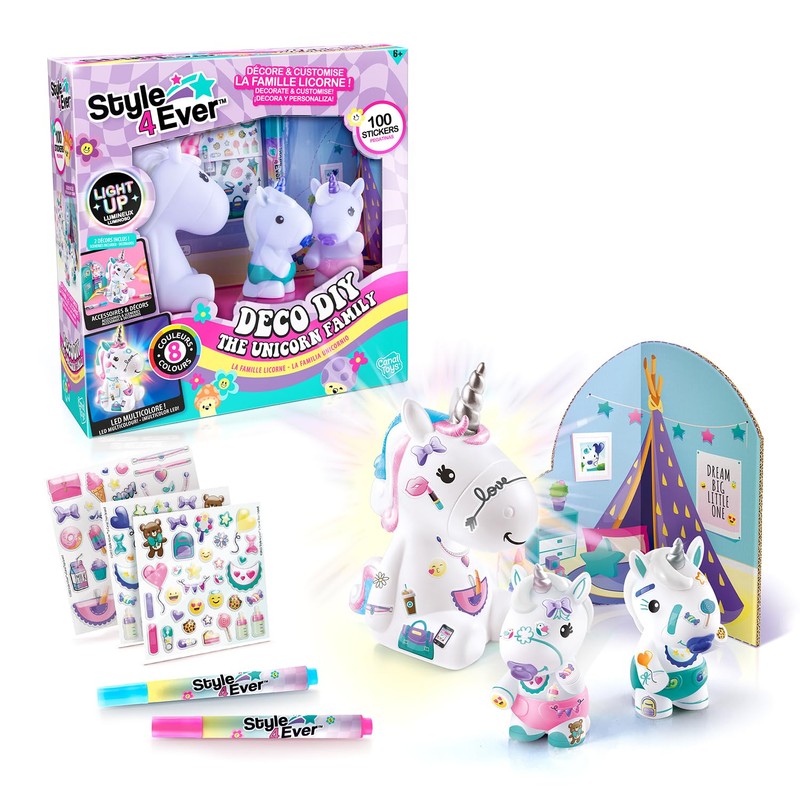 Canal Toys - Style 4 Ever OFG 287- DIY Unicorn Family LED Light Up, Decorate Your Figure with Marker and Sticker, 1 Set, White