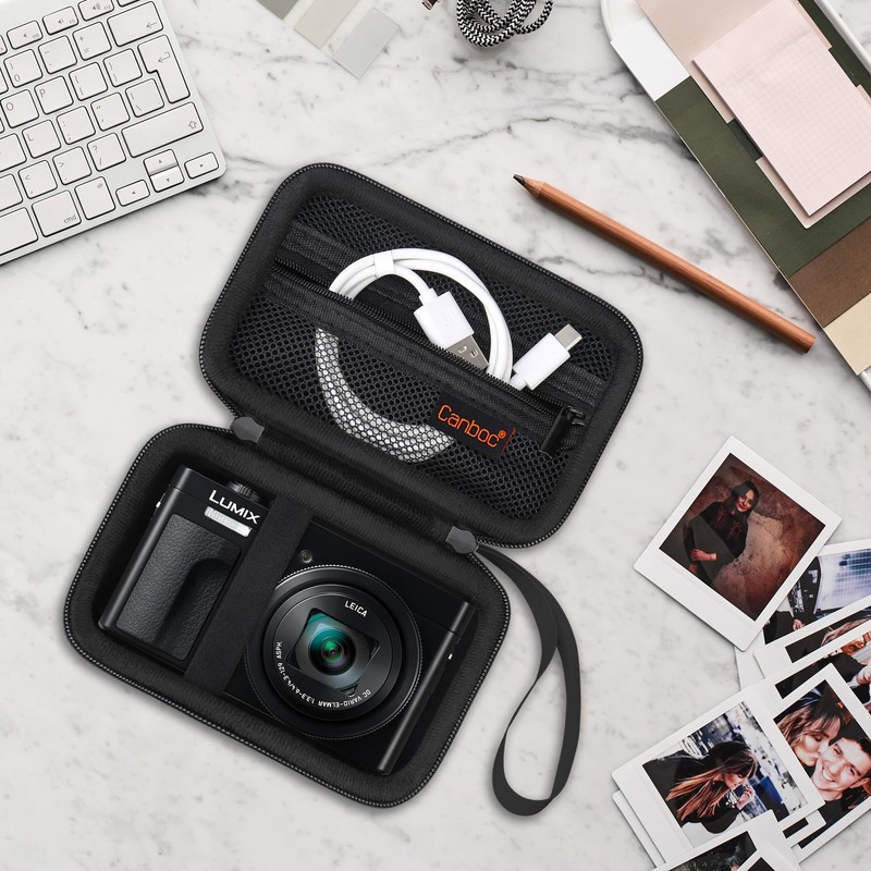Canboc Carrying Case for Panasonic LUMIX ZS99 Point and Shoot Camera, Compact Camera Bag, Zipper Mesh Pocket fits USB Cable, Batteries, Black (Case Only)