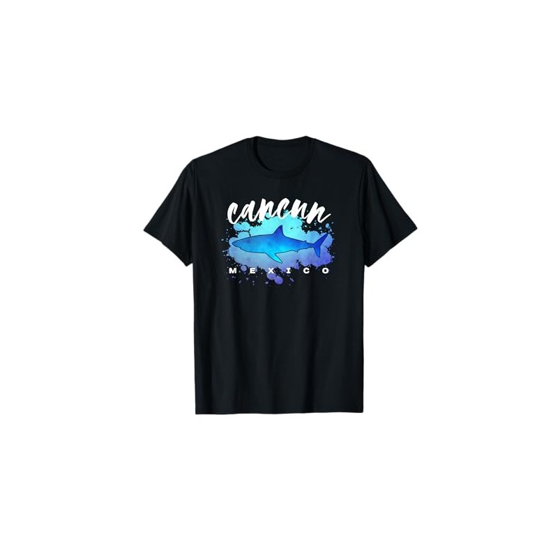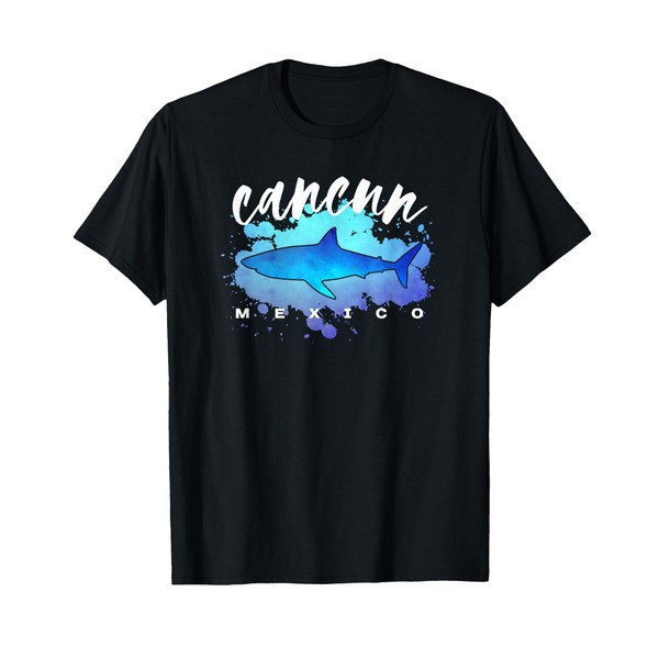 - Cancun beach vacation theme for shark lover women men teen girl boy kids says Cancun Mexico with shark image in blue color ocean water theme watercolor splash art graphic, fun family beach vacation souvenir for besties trip in tropical Caribbean paradise.