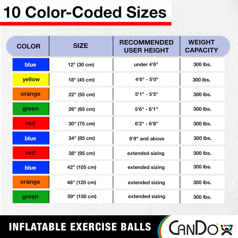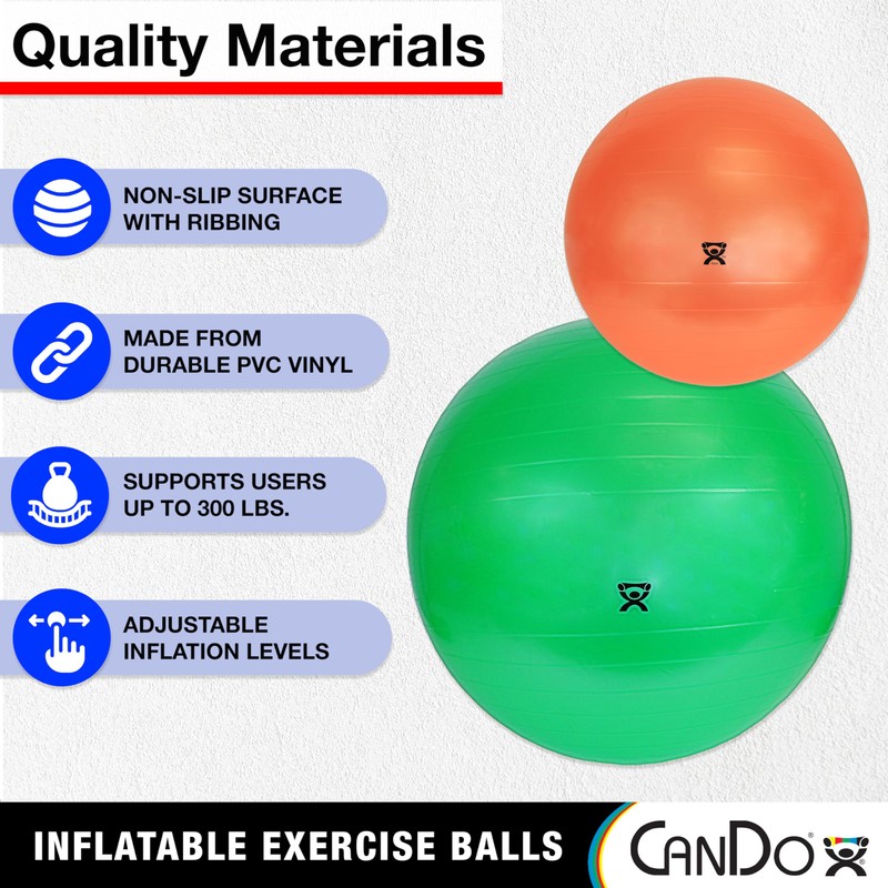 • CanDo gym balls are ideally suited for improving muscle strength, as well as stabilizing balance, coordination and flexibility