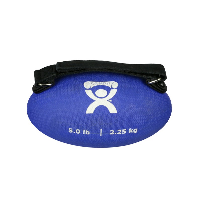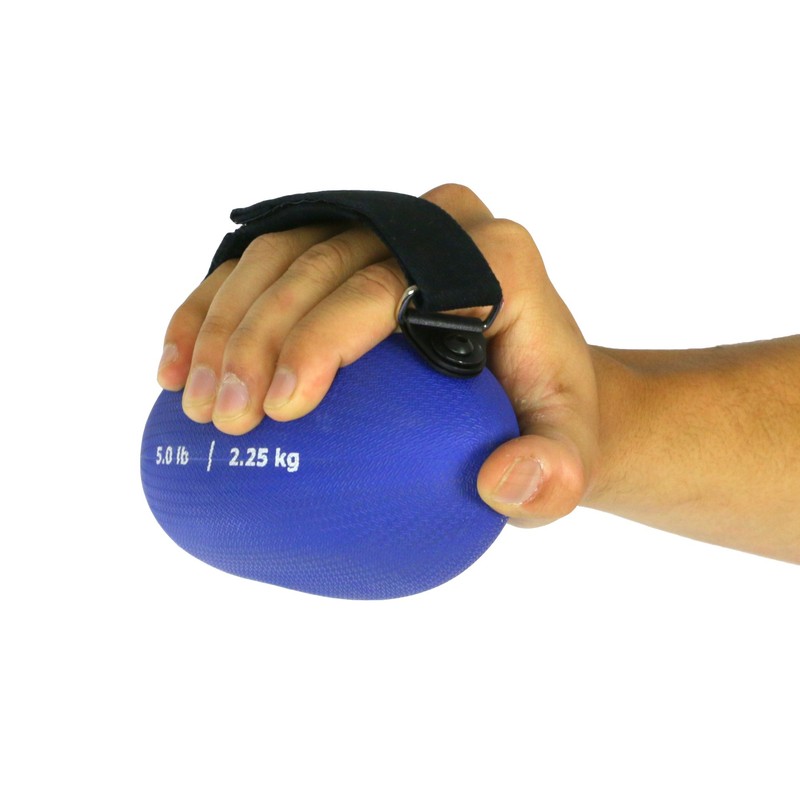 CanDo Handy Grip weight ball offers all the benefits of traditional weight training without using hard-to-hold metal dumbbells. Ergonomic shape makes for easy grasping and textured surface makes it slip-free. Strap ball to hand for added security and for firmer grasp. The strap is adjustable to fit most users. Football shape design with hand strap enables a variety of strength training and functional movements. Available in 6 color-coded weight levels.