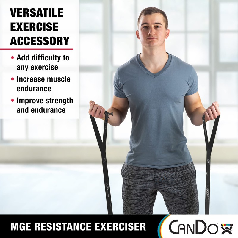 - ONE RESISTANCE BAND ENDLESS USES - CanDo Multi-Grip Resistance Bands with built in Hand, Foot and Finger Grips enable an unlimited array of exercise options. One tool rehabilitates post injury, improves flexibility, speeds healing and increases strength