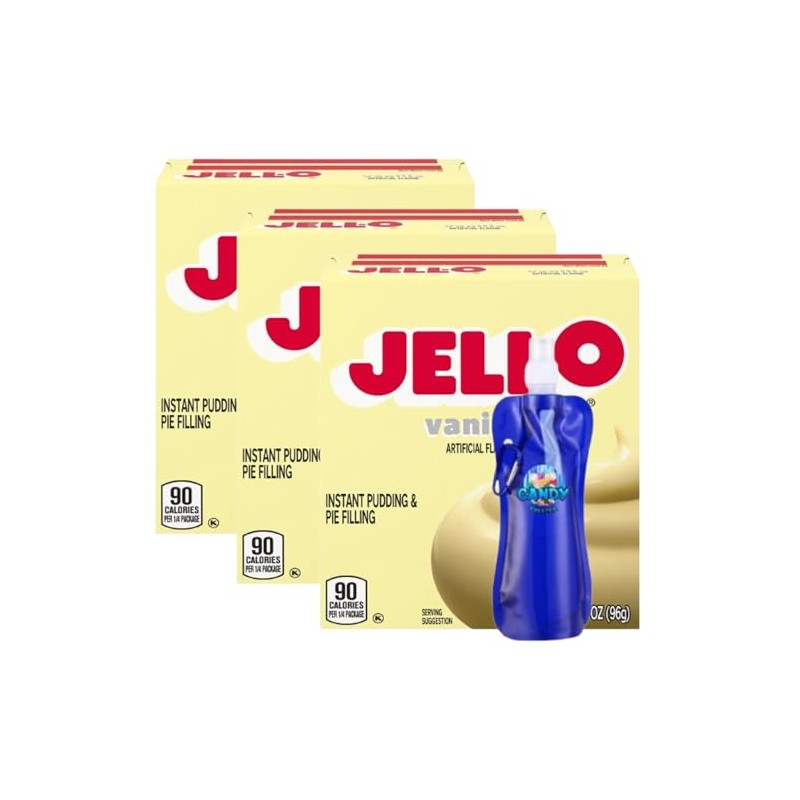 Candy Freezer Instant Pudding & Pie Filling Mix 3.4 oz oz (Pack of 3) with Collapsible Bottle (Vanilla) Bottle