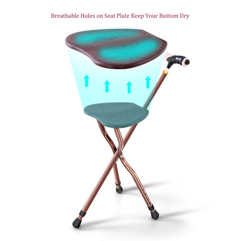 Folding Lightweight Walking Stick Cane with Seat Foldable Golf Chair Cane Stool Portable Seats Hold 350 lbs for Seniors Spectator
