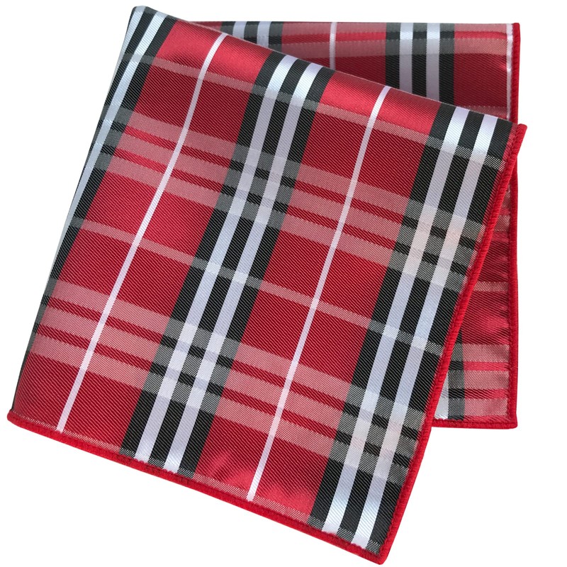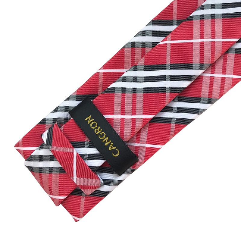 CANGRON Men Tie Red Plaid Necktie Pocket Square Cufflinks Tie Set LSG8HO