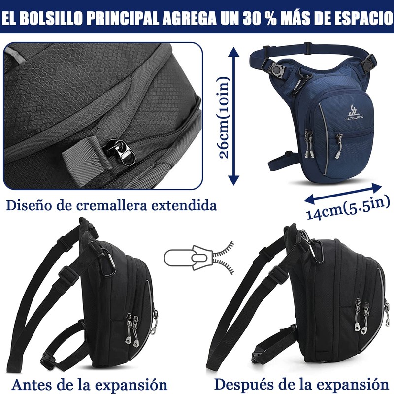 - ❤️DISEÑO INTERNO VERSÁTIL Y ESPACIOSO: Esta fanny pack tiene tres bolsillos, un bolsillo frontal con cremallera, un bolsillo lateral con cremallera y un bolsillo principal con cremallera. El bolsillo principal agrega un 31 % más de espacio de almacenamiento cuando la cremallera de expansión está abierta. Pueden contener anteojos, linternas, cargadores, banco de energía, llaves, teléfono celular, billetera, otros dispositivos pequeños, etc.