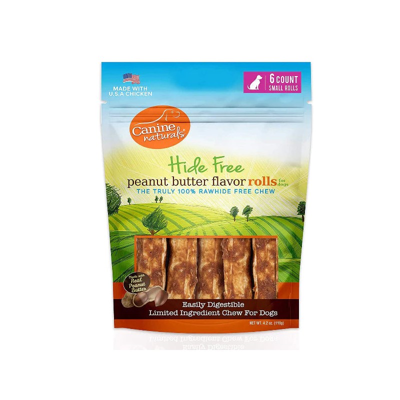 Canine Naturals Hide-Free Chews, Peanut Butter / Small 2.5" Rolls (6/pack / Up to 20lbs)
