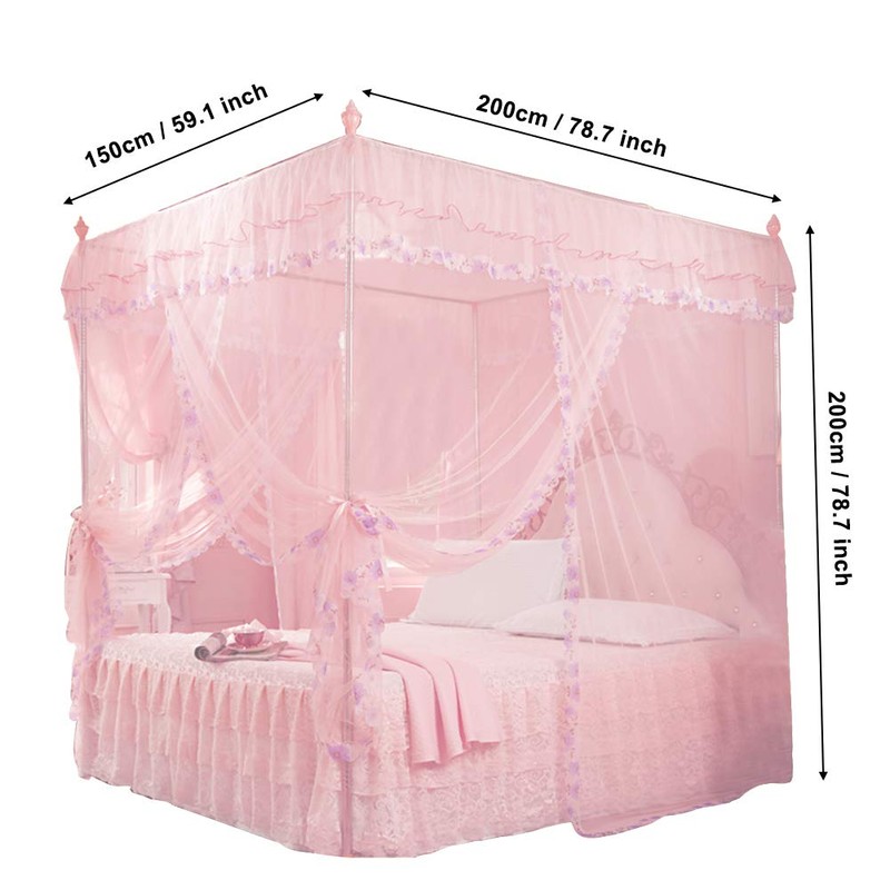 Canopy with Corners, Princess Canopy with Three Side Openings, Curtains with Four Corner Posts for Girls, Boys, Adults (150 x 200 x 200 cm), Pink