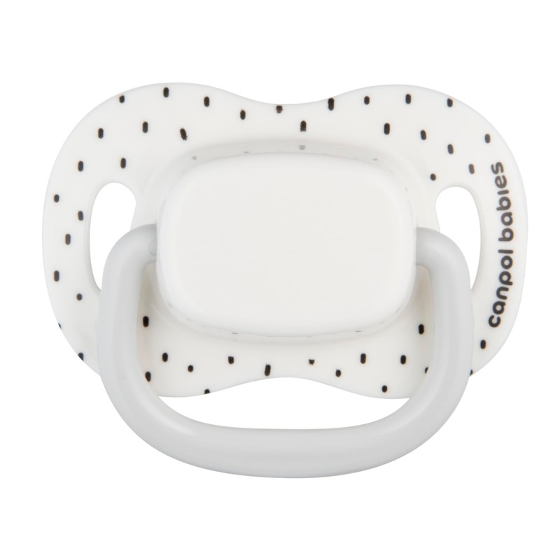 Canpol babies Schnuller-Luftstrom, Silikon, 6-18 m, symmetrisch, mit Mikrowellen-Sterilisationsbehälter, BabiesBoo 2 Stück, Weiß