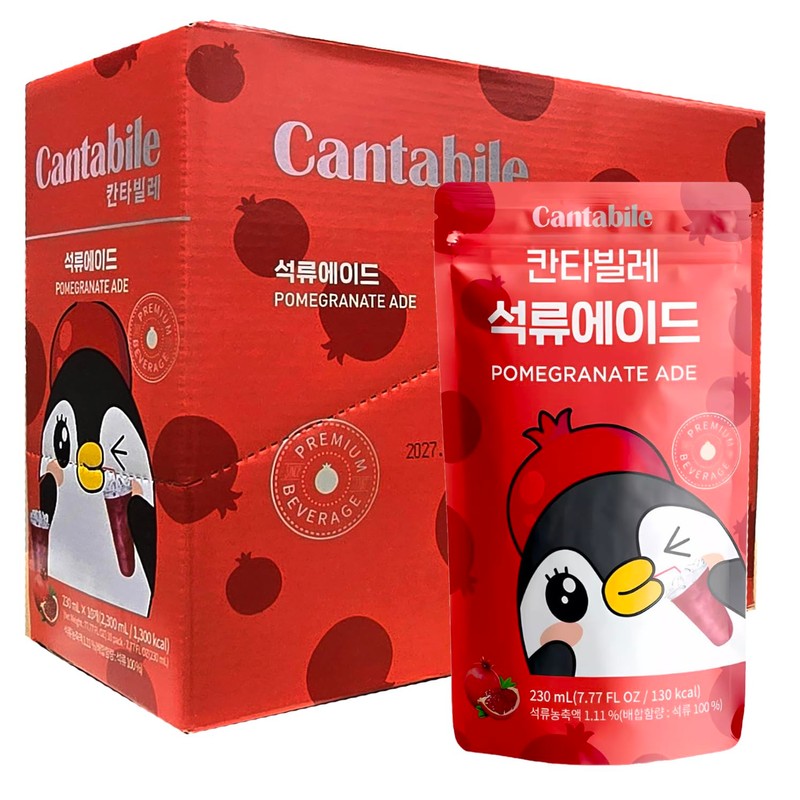 Cantabile Korean Convenience Store Pouch Drink Ready-to-Drink Refreshing Beverage Imported from Korea (Box of 10, Pomegranate)