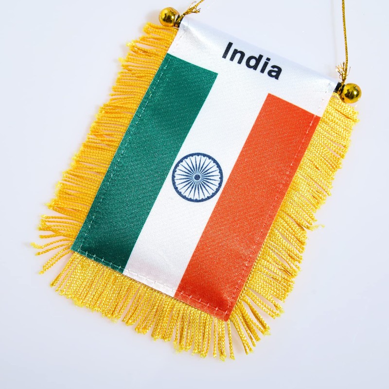 - 【SMALL FLAG SPECIFICATIONS】This small India flag size: 3 x 5 inches. Gold lanyards and tassels add to the beauty of the India flag, and suction cups allow it to be used in more ways than just hanging.