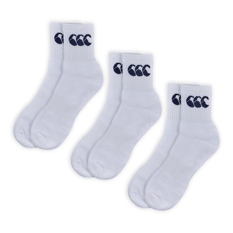 Canterbury Unisex Crew 3 Pack Socks, White/Navy, M