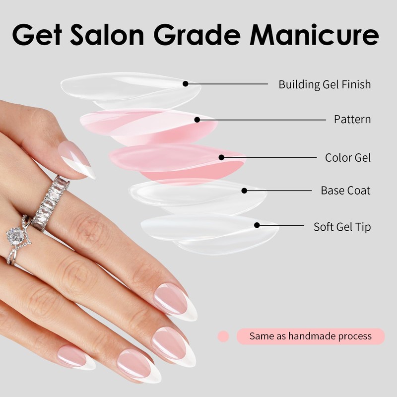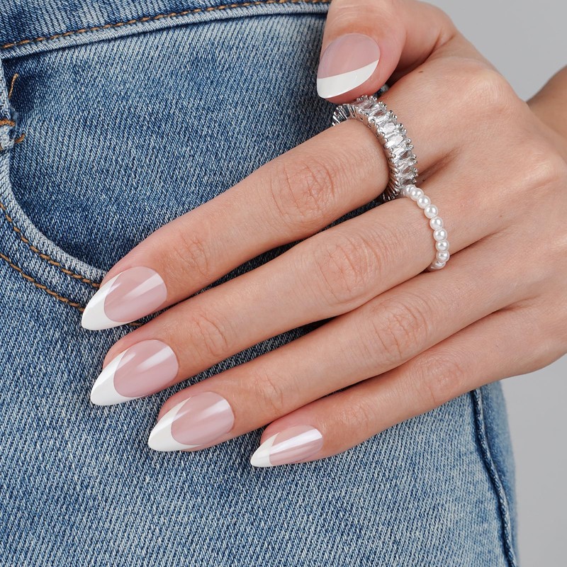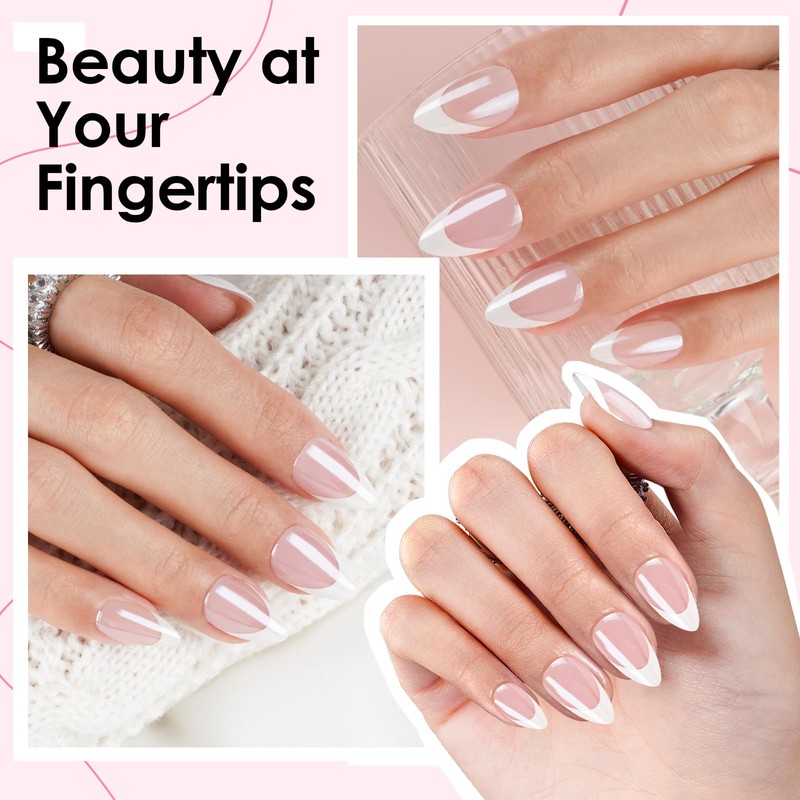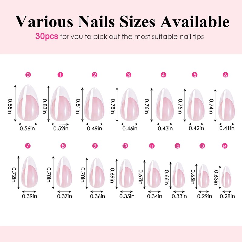 - Achieve Beauty in Minutes: Quick and easy to use almond french tip press on nails, you are only a few steps from a pro. Acrylic press on nails can wear up to 15 days, which will not affect your daily life. Removal with no mess and fuss with our glue remover.