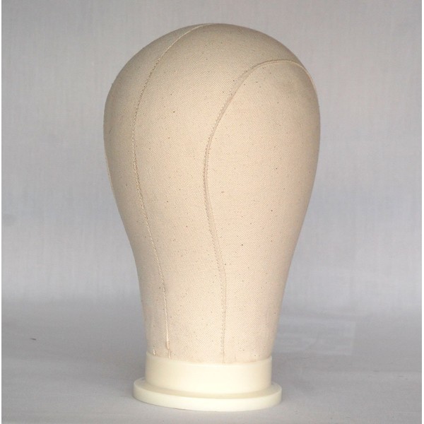 Canvas wig head for making wig and wig display, easy to put T pin on. Head circumference medium size 22.5 Inch,for medium to large size wig. Filled with Poly Urethane for long lasting. Uniform size base hole for any table clamp