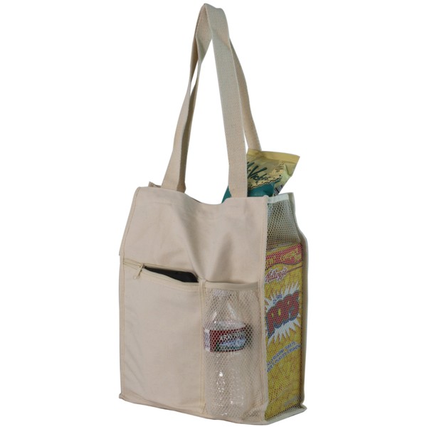 Canvas Mesh Tote Bag w/Bottle Holder