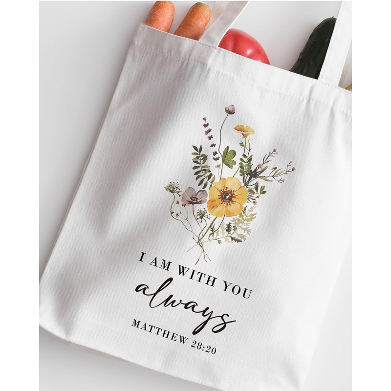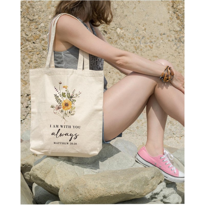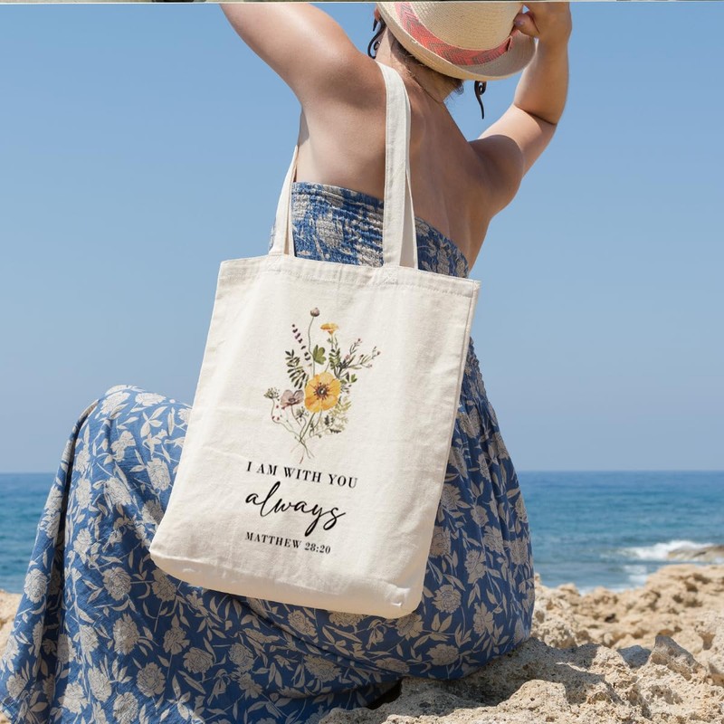 Canvas Tote Bag Christian, Canvas Tote Bags for Women, Bible Verse Totes, Reusable Cotton Totes for Grocery, Shopping, Beach & Daily Use, I am with You Always