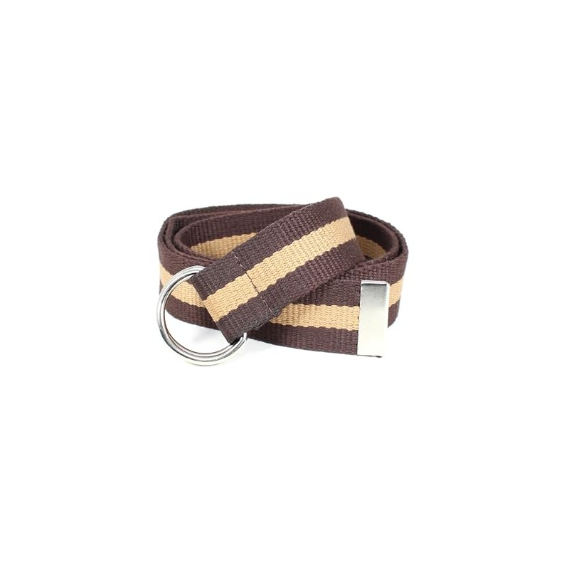 Canvas Web Belt D-Ring Buckle 1.25" Wide Metal Tip Mulit-Color (Brown/Light Brown-M)