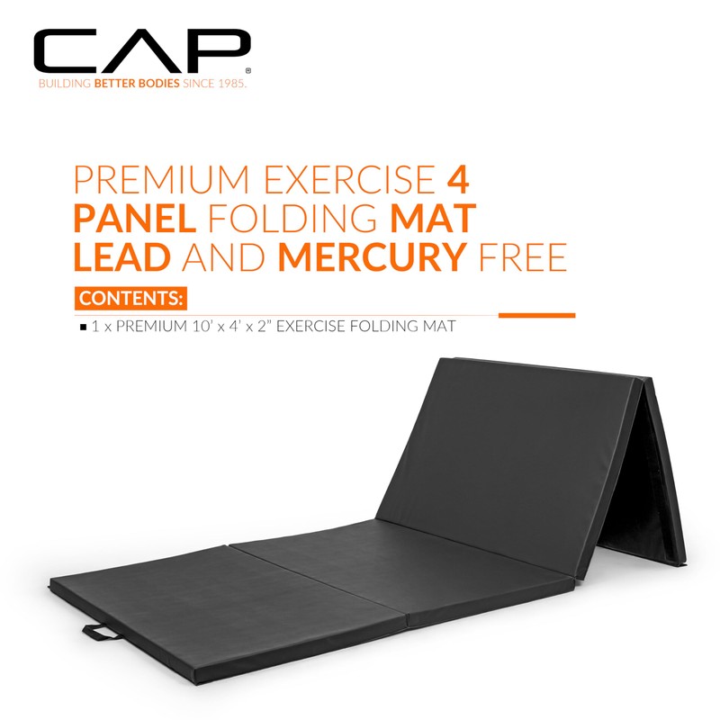 CAP All Purpose Folding Anti Tear Exercise Training Aerobic Fitness Gym & Gymnastics Balance Mat. 10' x 4' x 2" thick BLACK