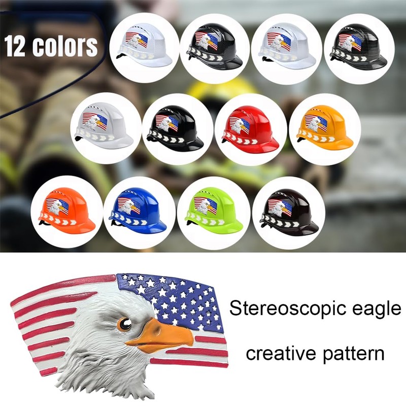 - Personality and Safety Design:This hard hat features a striking American flag design with a majestic bald eagle. And there are reflective strips on both sides of the hat to make you easier to notice.