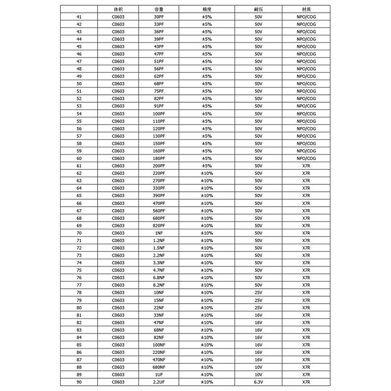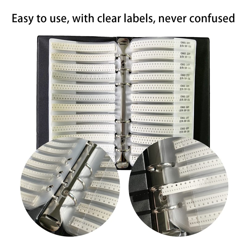 - This SMD capacitor sample book, 90 Value x 50pcs=4500pcs, which is specially used to store and organize sample books of electronic components, SMT capacitor kit 0603 (0.5pF-2.2uF).