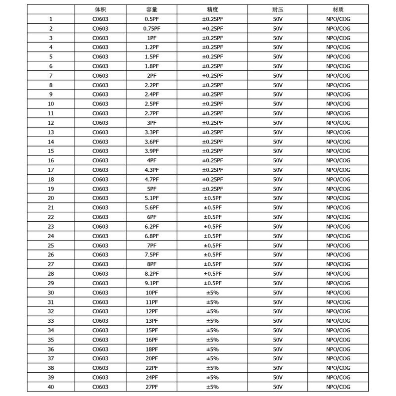 3.3pF±0.25pF 50V / 3.6pF±0.25pF 50V / 3.9pF±0.25pF 50V / 4pF±0.25pF 50V / 4.3pF±0.25pF 50V / 4.7pF±0.25pF 50V