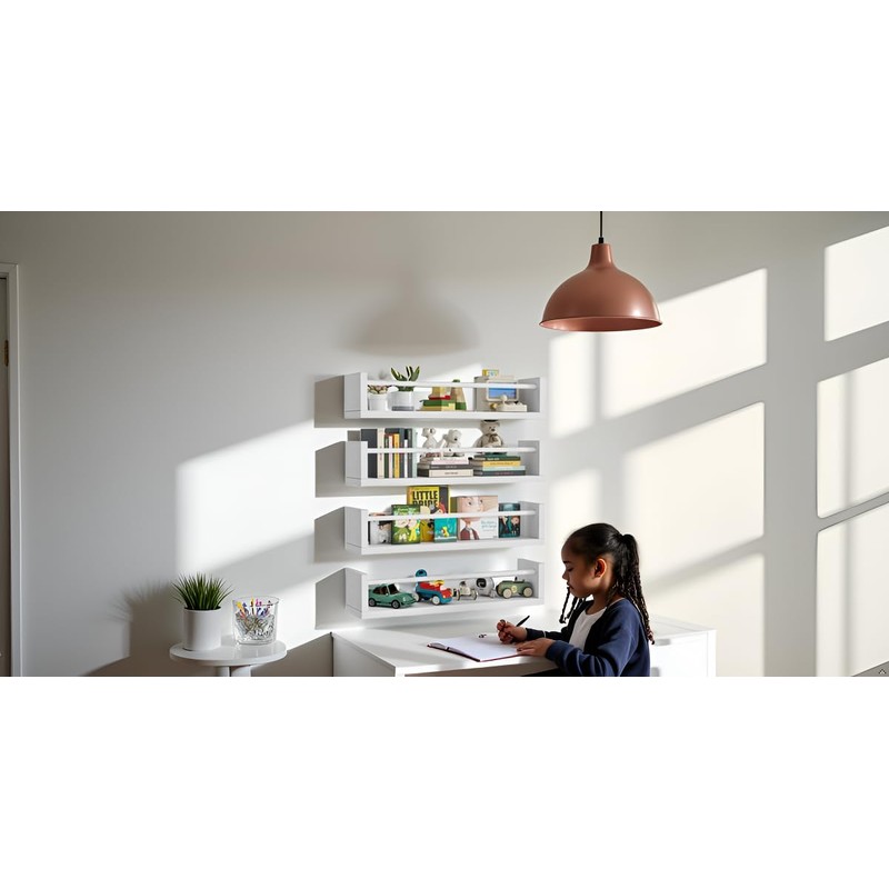 - 【Space-Saving 4-Tier Design】Maximizes vertical storage with 4 layers (16.5" long each) to organize books, toys, and decor. Ideal compact wall bookshelf for kids rooms, nurseries, or small spaces. Keeps floors clutter-free and encourages toddler independence.