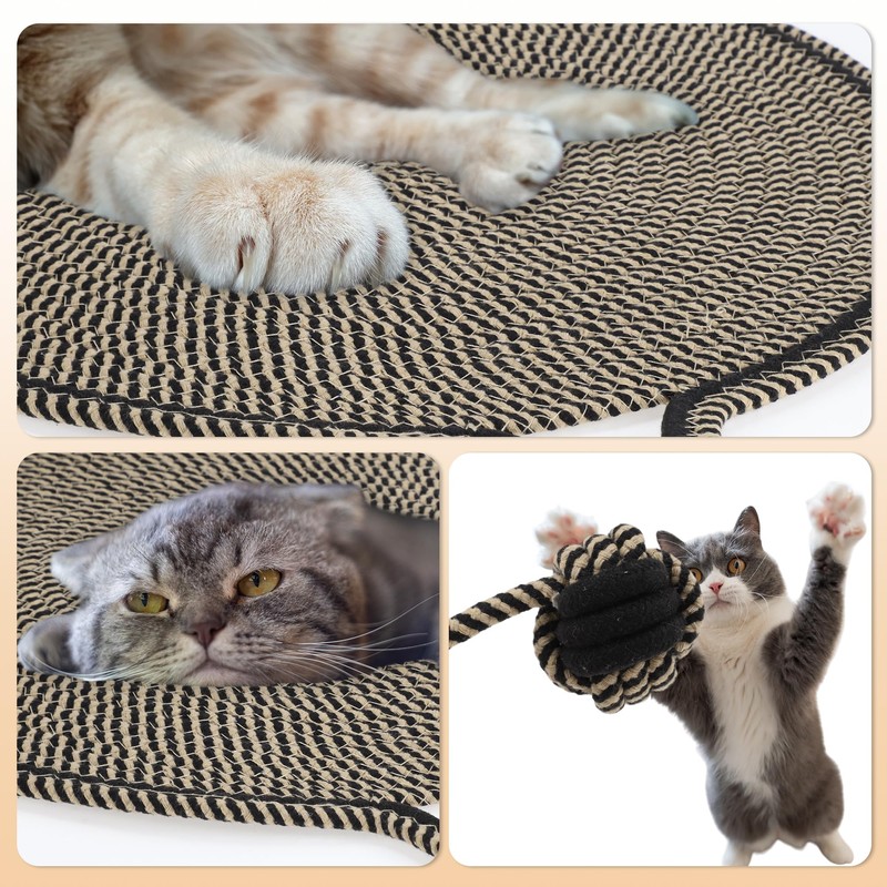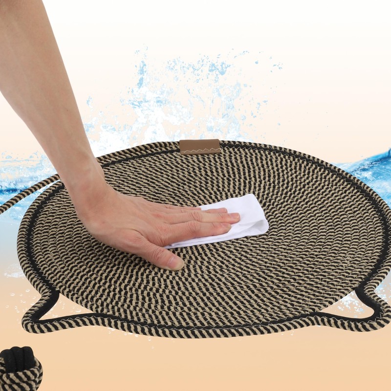 • Material Our cat scratching mat is made of woven cotton rope, which is durable and makes it easier for your cats to play and scratch without damaging furniture or carpets.