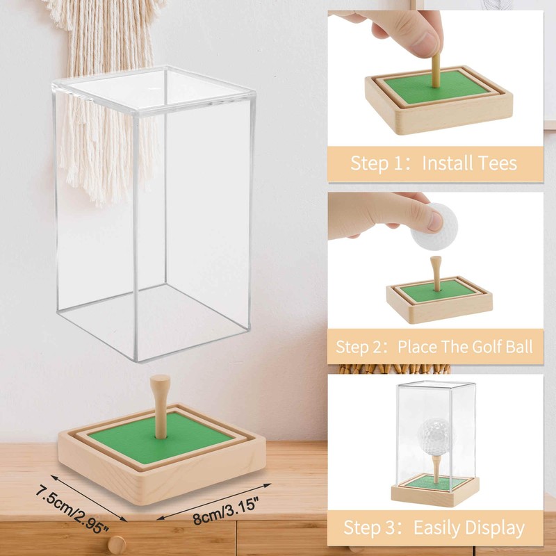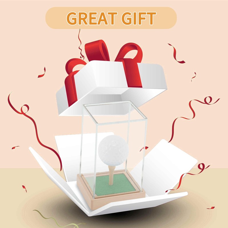 • Golf Ball Display Case: Elevate your golf ball collection with our hole in one golf ball display case. This premium case includes a wooden base, clear acrylic cube, lifelike artificial turf, and wooden golf tee, providing a sophisticated showcase for your Hole In One Golf Ball as well as other cherished memorabilia, jewelry, or trinkets.