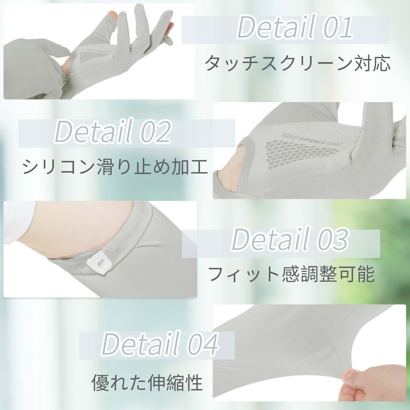 [CAPASTEC] アームカバー uvカット 冷感 アームスリーブ 手袋付き 日焼け防止 紫外線対策 スポーツ ランニング 運転用 自転車 男女兼用 ひんやり ライトグレー
