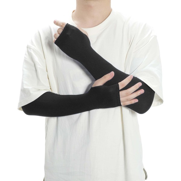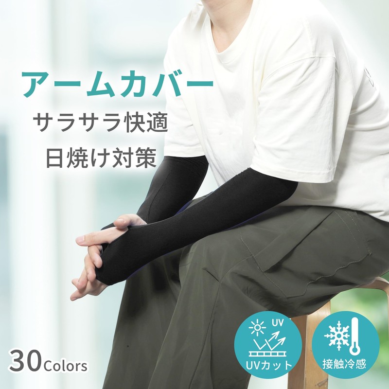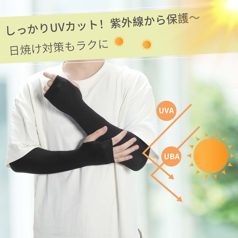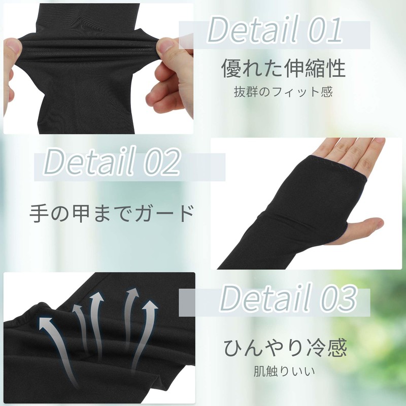 [CAPASTEC] アームカバー uvカット 冷感 アームスリーブ 指掛けタイプ 日焼け防止 紫外線対策 スポーツ ランニング 運転用 自転車 ひんやり 腕カバー 黒 ロング
