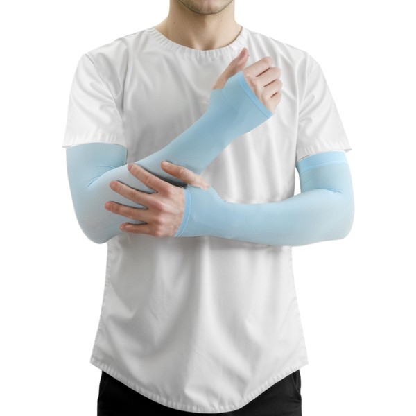 [CAPASTEC] アームカバー uvカット 冷感 アームスリーブ 指掛けタイプ 日焼け防止 紫外線対策 スポーツ ランニング 運転用 自転車 ひんやり 腕カバー ライトブルー