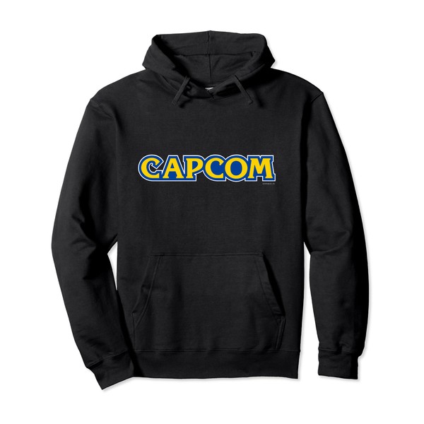 Experience comfort and style with our official licensed CAPCOM logo Pullover Hoodie. This classic fit, long sleeve hoodie features a solid black color with a vibrant CAPCOM logo print, perfect for any unisex adult. Made from 100% cotton, this 8.5 oz hoodie offers a standard length with a straight hemline and a kangaroo pocket. The hoodie is easy to care for, machine washable, and comes in a small size suitable for medium body types. Pull it on and enjoy the classic, casual look with a touch of gaming inspiration.