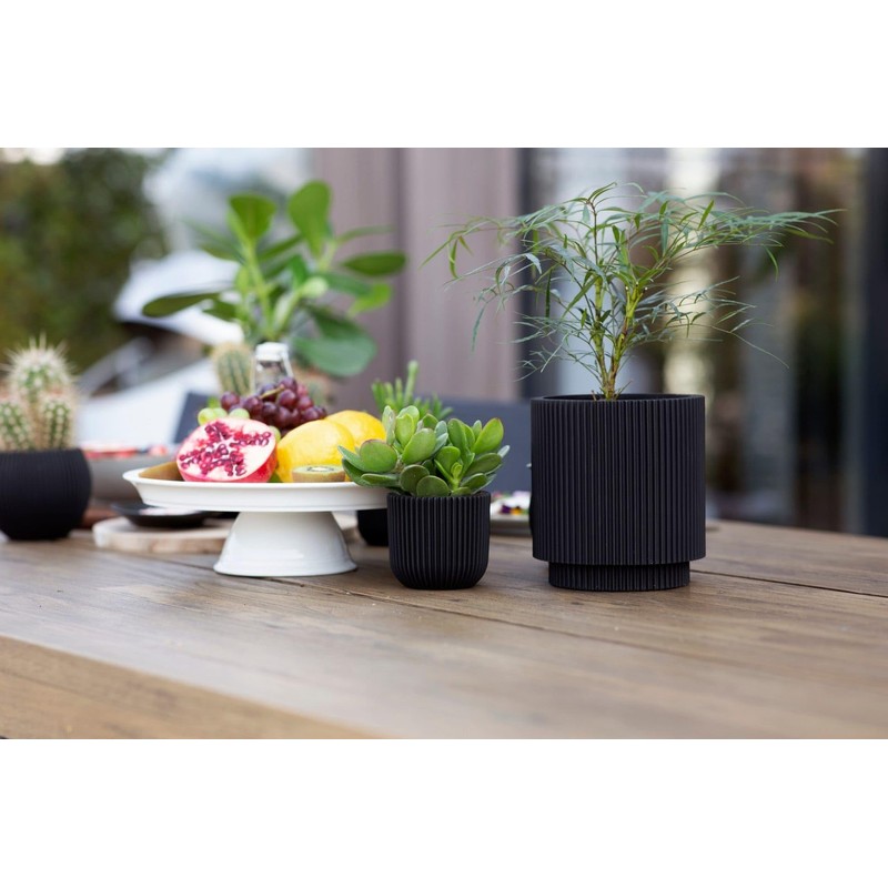 Capi Europe - Pot Cylinder Groove Black & Gold - 11x12 - Gold - Opening Ø10 - Flower Pot for Indoor Use - BGVGB312