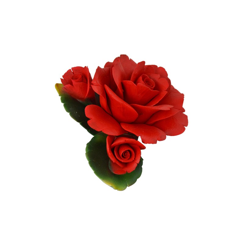 Capodimonte 6"" Inch Italian Handmade Ceramic Red Rose with Leaves, Red, Green