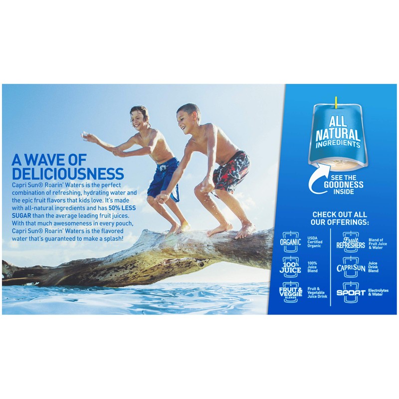 - Forty 6 fl oz pouches of Capri Sun Roarin' Waters Naturally Flavored Tropical Tide Water Beverage