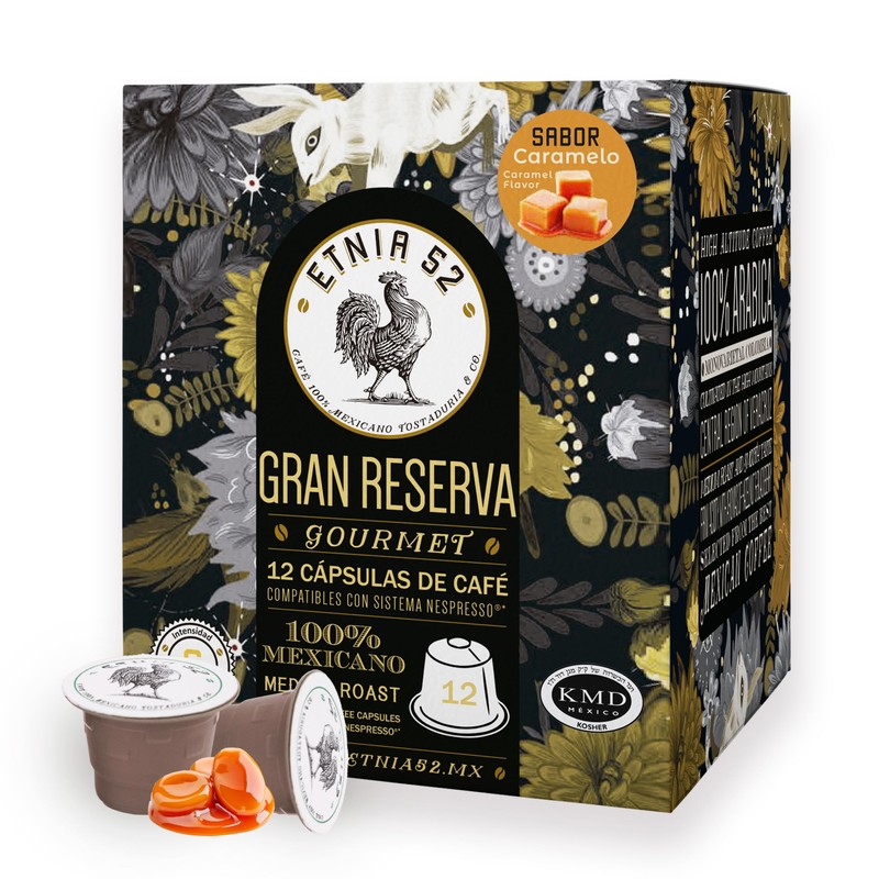 Cápsulas de Cafe de Altura - Sabor Caramelo | 12 Cápsulas | Tostado Medio | Intensidad 6 | Sin azúcares añadidos | 100% Arábica | Certificación Kosher | Cápsulas Cafe | ETNIA 52