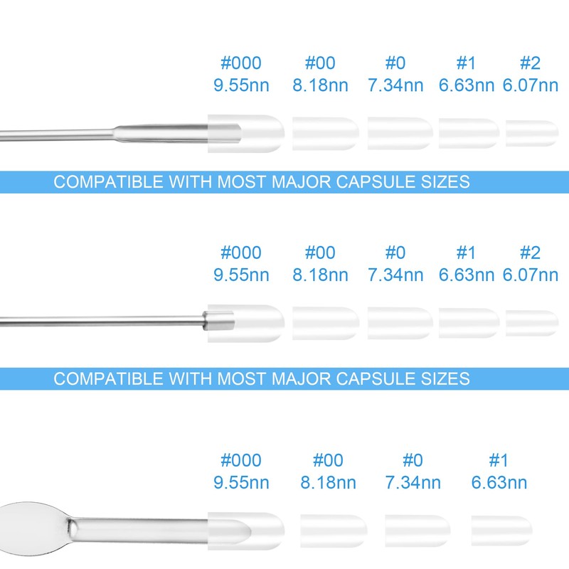 Capsule Filling Tools, Micro Lab Spoon Spatula Tamper Tool for Fast and Easy Gel Capsule Filling, Gel Cap Capsule Pill Filler Machine - #000 00 0 1 2