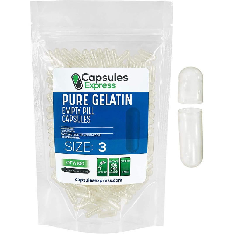 - Love Your Supplements - You'll love the superior quality, security and convenience of our bovine gelatin size 3 capsules. We only source from the highest quality manufacturers. Join thousands of satisfied customers and up your health game. XPRS Nutra is your top choice for pill capsules empty in all sizes 000, 00, 0, 1, 2, 3, 4, and 5, and colors blue, green, white, orange, red, pink and more.