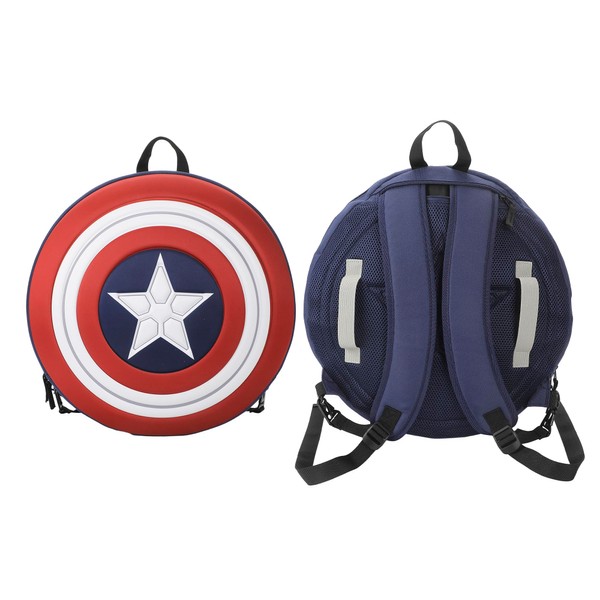 Embrace the hero within with this Captain America Brave New World novelty backpack, designed to look like Captain America’s iconic shield with a 3D molded front shell. This innovative bag includes removable shoulder straps for customizable comfort, elastic webbing straps to securely hold the shield, and an interior laptop sleeve for added convenience. Crafted from durable EVA foam and poly, it measures 16” W x 16” H x 5.5” D. For easy maintenance, simply wipe clean to keep it looking fresh.