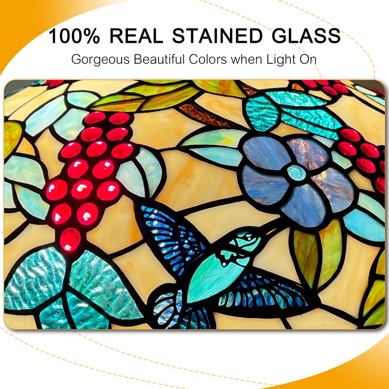 - Real Tiffany Lamp: lamp shade is handmade by skilled craftsmen,Each small piece of stained glass of the lampshade is spliced by copper foil method,victorian design style,never fade color,durable and beautiful