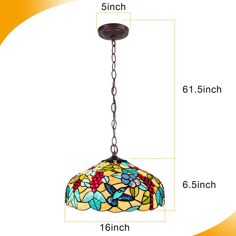 - Bulb Matching: We can use Incandescent bulb(Max.2xE26/60W),LED or CFL bulbs (bulbs are not included) for this pendant tiffany lighting fixture,different bulbs get different looking, recommanding to use Edison LED bulb.