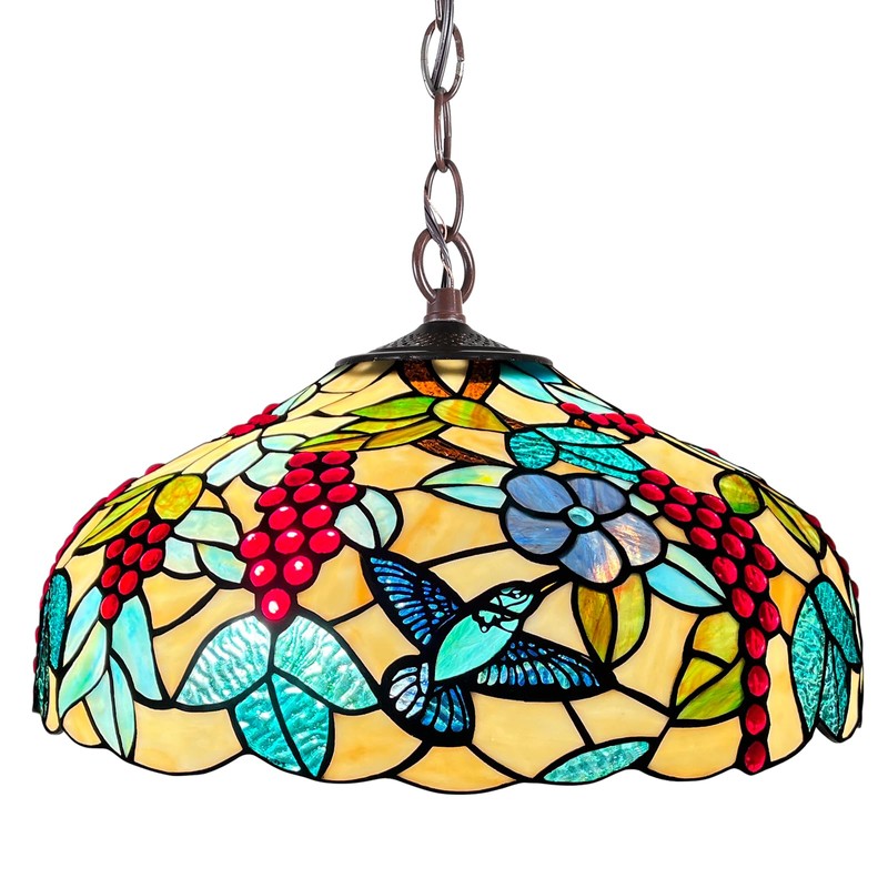 Capulina victorian handcrafted stained glass pendant light lampshade is slight heavy than you expected, because it is made of real stained glass, not a plastic shade.