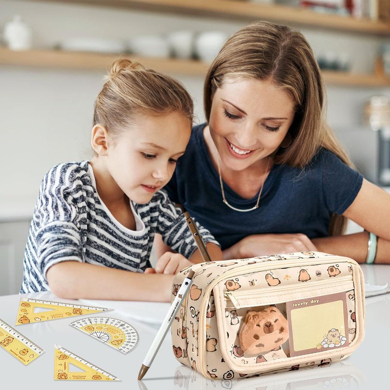 • Versatility: In this multi-layer Capybara pencil case, you can not only store your school supplies, but it can also be used as a travel wallet or chic cosmetic bag. The multi-layer classification design provides ample space so you can keep your belongings orderly, whether you are studying indoors or outdoors