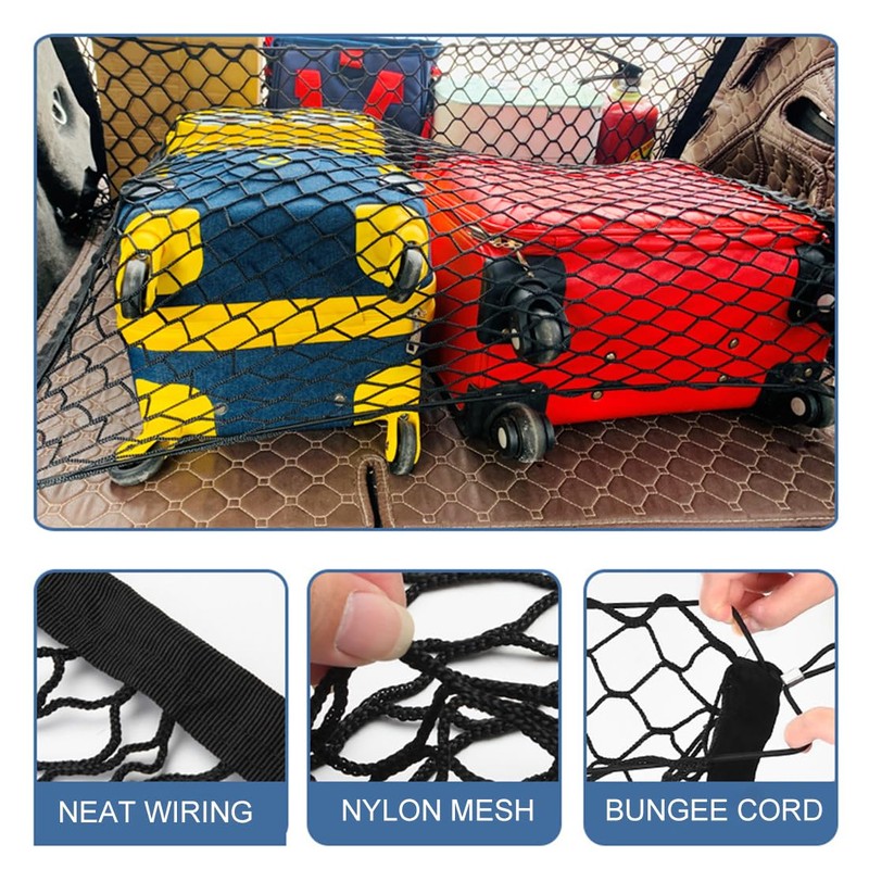- Widely used: The elastic boot net is suitable for the boot spaces of most cars and trailers to secure luggage or other items so that they do not slip or tip over while driving, and keep them in place without being damaged.