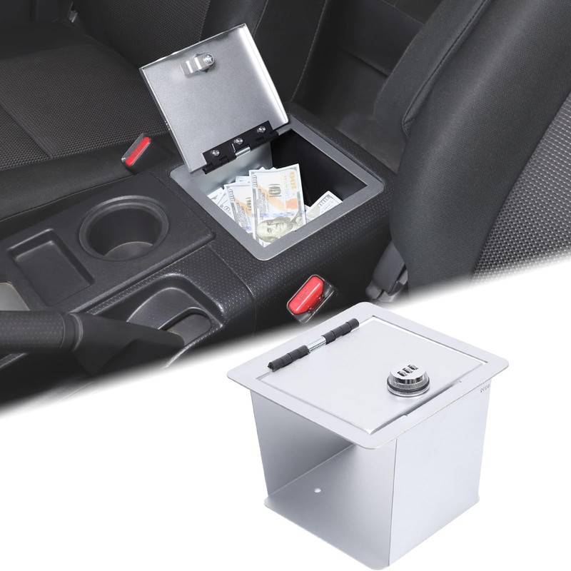 - Quality Material: This center console lock safe box armrest storage is made from premium carbon steel, well-made, which lights weight and is sturdy, not easy to crack or deform. With a silver powder-coated surface finish process, completely rust-proof and wear-resistant and long service life.
