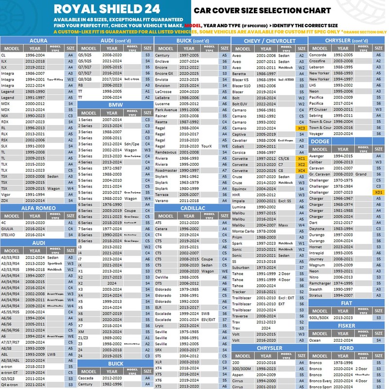 - Universal Compatibility: Available in various sizes to fit most cars, trucks, and SUVs, with mirror pockets for added durability and compatibility. Refer to our size chart for the perfect fit.