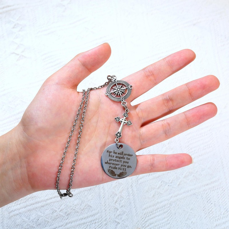 - DURABLE AND HIGH-QUALITY MATERIALS - The guardian angel gift for her is crafted with a 1Inch stainless steel "For he will order his angels to protect you wherever you will go. Psalm 91:11" or "I AM WITH YOU ALWAYS. Matthew 28:20"charm, a 1x1.2" antique silver compass charm, and an antique silver cross link. The stainless steel material ensures durability, rust resistance, and color retention, making it a lasting and reliable accessory.