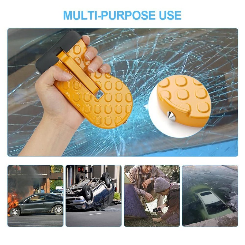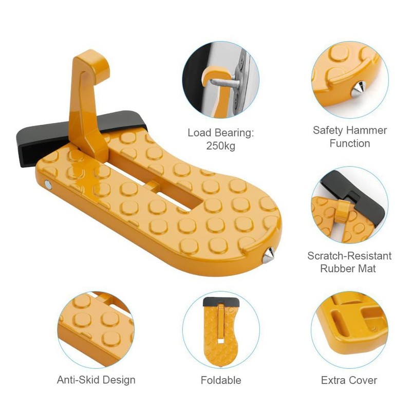 - The car door step for car roof access also features a built-in glass breaker for emergency situations.